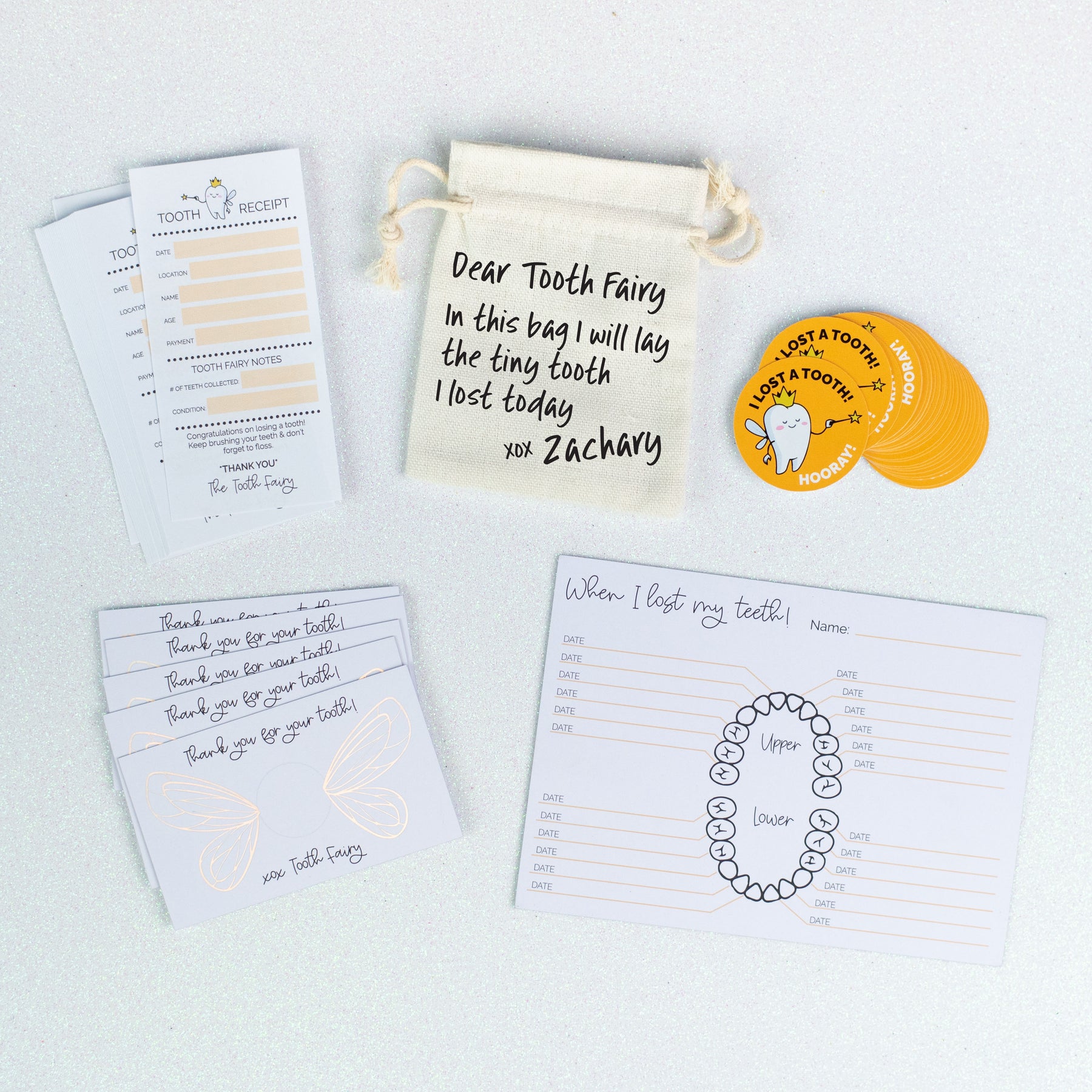 Turn every lost tooth into a special moment with our thoughtfully designed Tooth Fairy Pack — created to help parents build a sweet, believable Tooth Fairy tradition that children will treasure.
